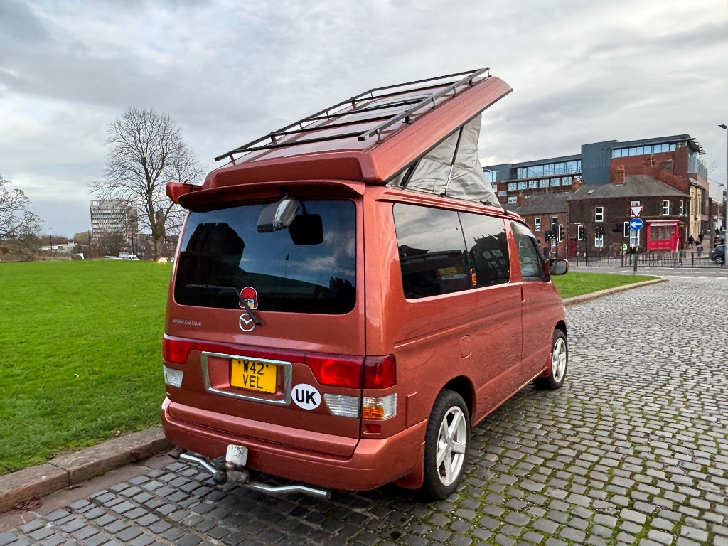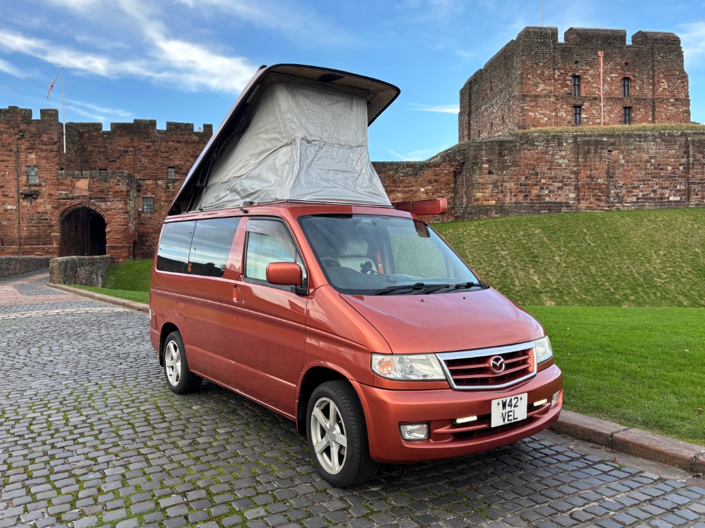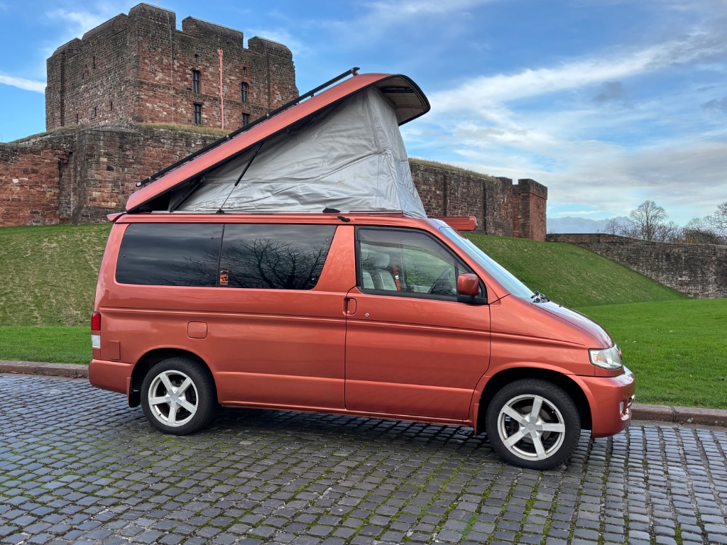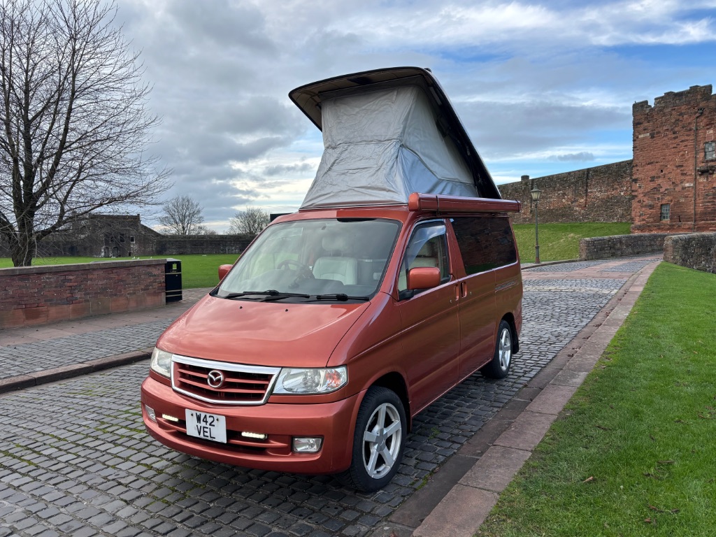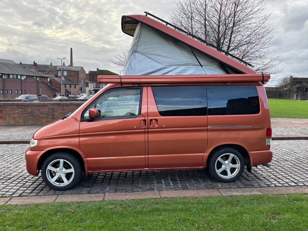 Mazda Bongo Friendee 2006 in Orange 2.5 Diesel engine with auto box. This camper / day van is in very good condition and come with a side a retractable side awning and a Fiamma sun canopy. It has a pop top with gas cooking Hob with sink and toilet. The seating area pulss down into a double bed and pushes away to make way for a table which can be assembled. As ive said its ben very well looked after and in the last year its had Timing Belt - Water pump - Fan Belt - Alternator belt and pulley -Gear box oil changed - New rear disca and pads - Front replacement calipers and pads - Sills fitted on both sides Oil and Oilfilter - Waxoyled chassis - Mattress purpose made - Colour coded cushions for bed in pop top - leather upholstery - 4 Wheel Drive - L7 limited slip diff which not all Bongos have. The van will come with 12 months free AA breakdown cover and has no vat to add to the price.
